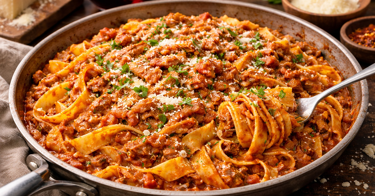 Try out our Pork Ribs Bolognese recipe today! This dish features tender boneless pork ribs slowly simmered with tomatoes, wine, and vegetables.