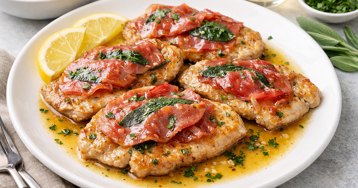Try out our Pork Saltimbocca recipe today! This dish features tender pork cutlets layered with fresh sage and prosciutto, pan-seared until golden and finished in a buttery white wine sauce.