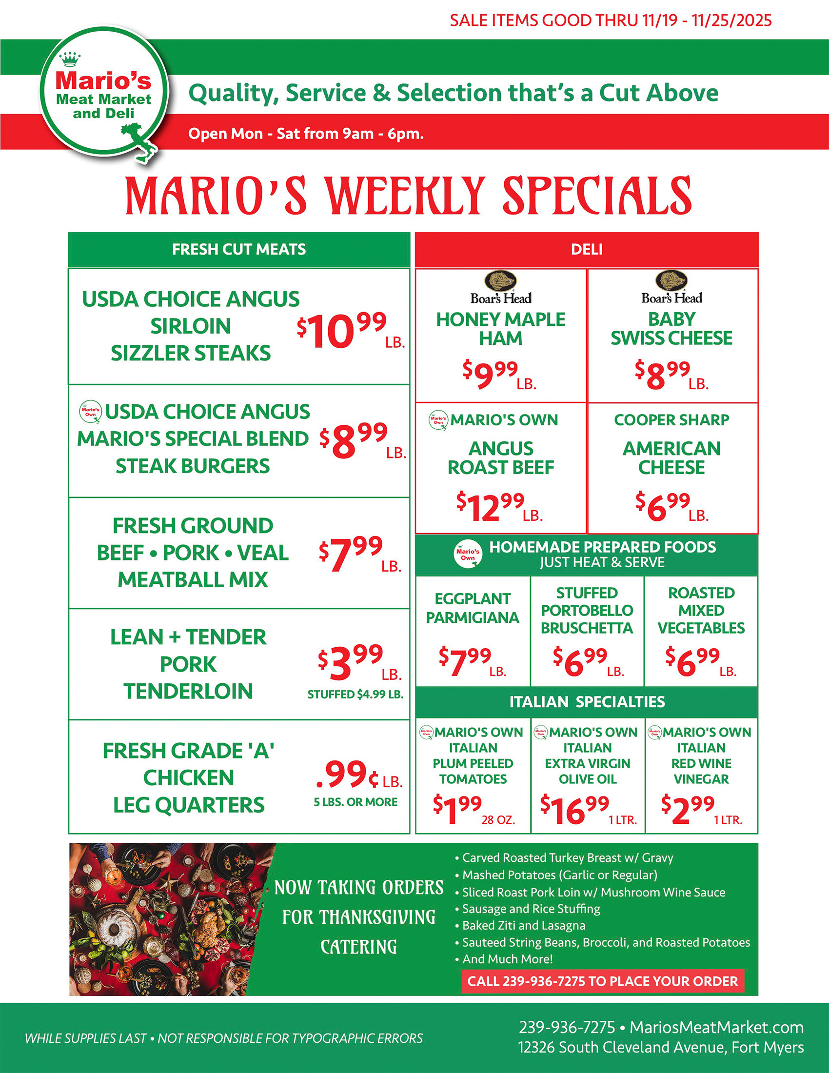 Mario’s has the best weekly ad specials in the Fort Myers area. Get big savings on quality meats, deli items, wines and specialty beers, groceries and Italian specialties each week with our weekly ad. Stop by our gourmet meat market and deli to see all of the specialty items we have on sale. Additionally, if you haven’t signed up for our newsletter, click the link below and start receiving our Weekly Specials by email.