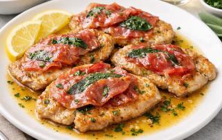 Try out our Pork Saltimbocca recipe today! This dish features tender pork cutlets layered with fresh sage and prosciutto, pan-seared until golden and finished in a buttery white wine sauce. Prep Time 10 Min | Cook Time 15 Min | Serves 4 Ingredients 2 tsp fine sea salt 2 tsp ground black pepper 8 thin slices prosciutto 8 fresh sage leaves 1/2 cup all-purpose [...]